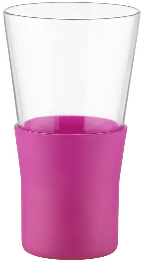Стакан для кофе/чая 320 мл, с силиконовой подставкой, розовый, стекло, серия YPSILON Brio, Bormioli Rocco